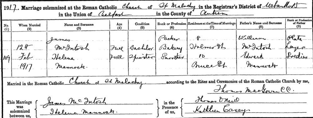 1917 Jan/Mar Married James McIntosh in Belfast