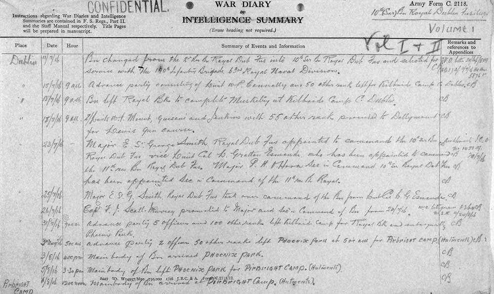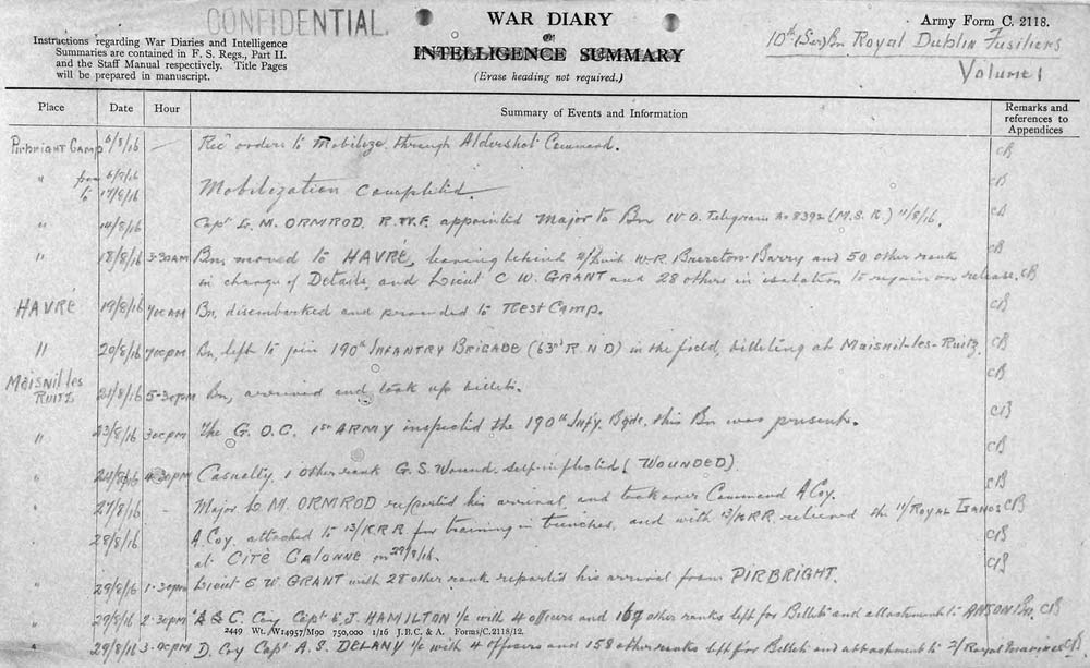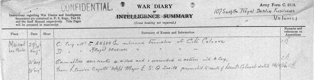Royal Dublin Fusiliers War Diary August 1916