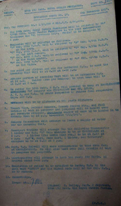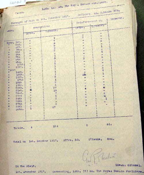 Vol 16. 10th RDF War Diary for Nov 1917 . The photos of the actual diary for November 1917 are here.