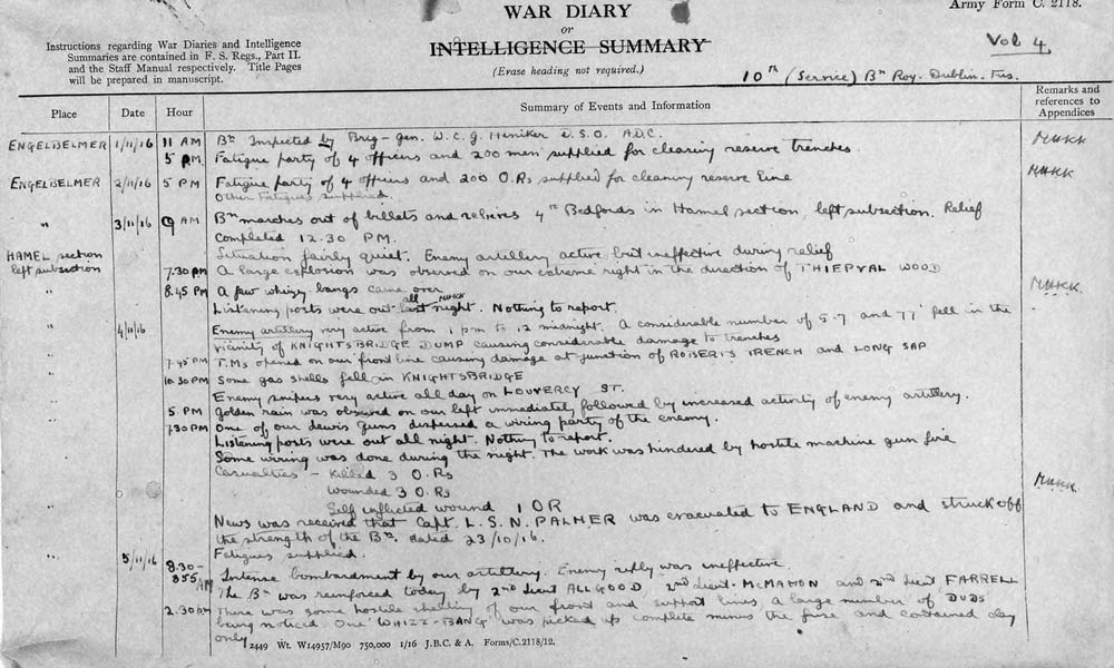 1916 Aug This is the first of the battalions war diaries and covers their move to France