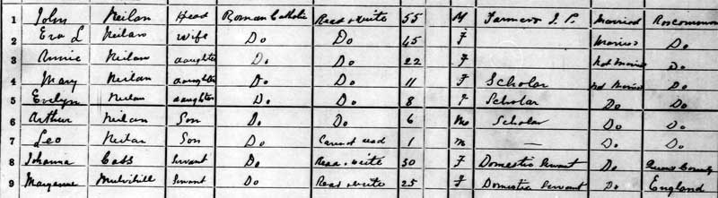 - 1899 Leo. No sign of Leo Neilan after the 1901 census. I assume he is one of 4 of Eva's children who were dead by 1911