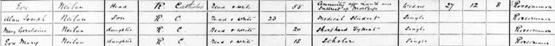 - 1880 Feb 13. Evalen Anna Neilan Neilan born Ballygaldy, Roscommon with parents John Neilan & Eva Kelly (Baptised 27 Feb 1880)