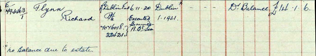 Flynn had been in Royal Dublin Fusiliers as 9576, switched to Liverpool Regt, then back to RDF probably after the war as 32421 |
