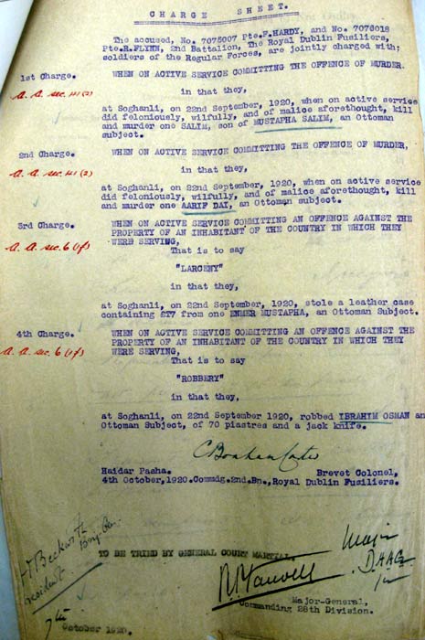 A complete list of those Royal Dublin Fusiliers buried at Haidar Pasha. All 2nd Battalion unless noted, buried at Haidar Pasha is, apart from Richard Flynn.