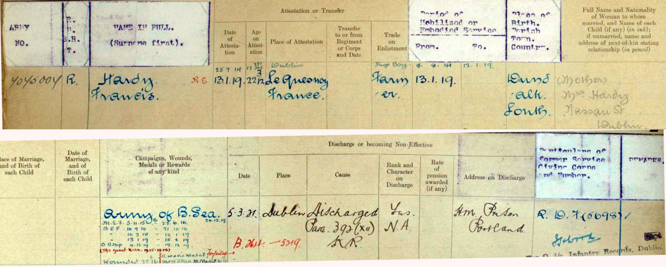 1921 Mar 5. Hardy was discharged from the Army and was in HMPrison Portland